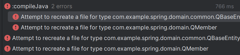 QueryDSL을 사용하려고 하니 다음과 같이 에러가 떳다.