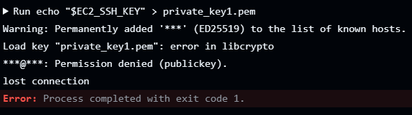 깃허브 액션 통해 서버 배포하려는데 다음과 같이 에러가 떳다.